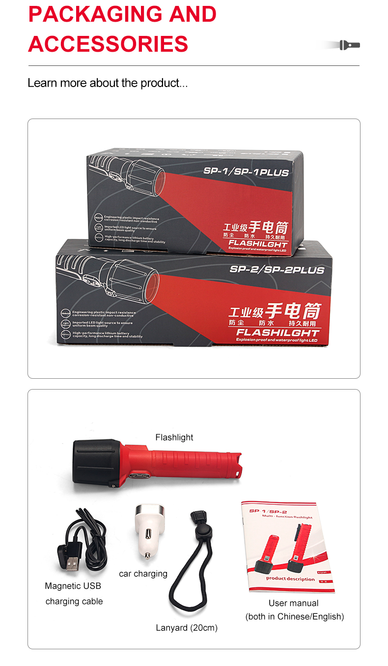 Unleash the power of reliability and safety with the 3W Anti-Explosive LED Flashlight SP-2—a cutting-edge lighting solution engineered for hazardous environments and extreme conditions. This high-performance torch combines robust explosion-proof technology with user-friendly features, making it the ultimate choice for professionals and adventurers. With a simple one-button control, effortlessly switch between three adjustable light levels to suit any task, while the built-in SOS function adds an extra layer of security. Crafted from non-conducting nylon polymer and fortified with an anti-shaving aluminum alloy frame and unbreakable polycarbonate lens, the SP-2 withstands chemical corrosion, impacts, and harsh handling. Its Cree LED offers a staggering 100,000-hour lifespan, while the Panasonic lithium battery supports 800 charging cycles. Magnetic suction charging, IP55 waterproofing, and a digital power display enhance convenience and durability, ensuring this compact, anti-slip flashlight is your go-to companion for industrial work, outdoor exploration, and emergency situations.