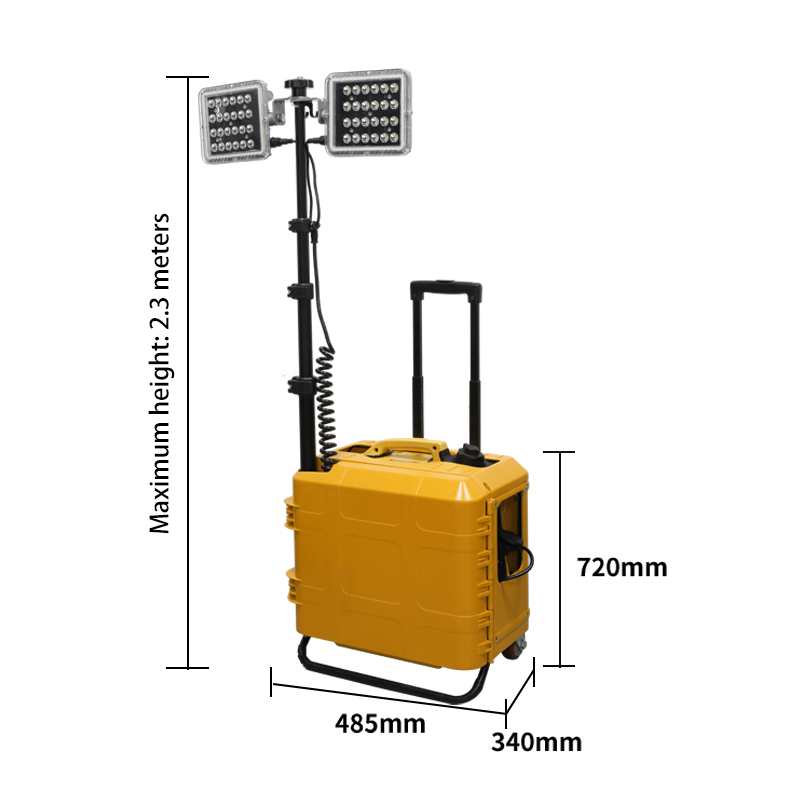 The lifting mast is adjustable from 0.72 meters to 2.2 meters, with a maximum deployment height of 2.3 meters, providing wide-area, high-angle lighting coverage to meet the large-area lighting needs of construction, rescue, and other scenarios.