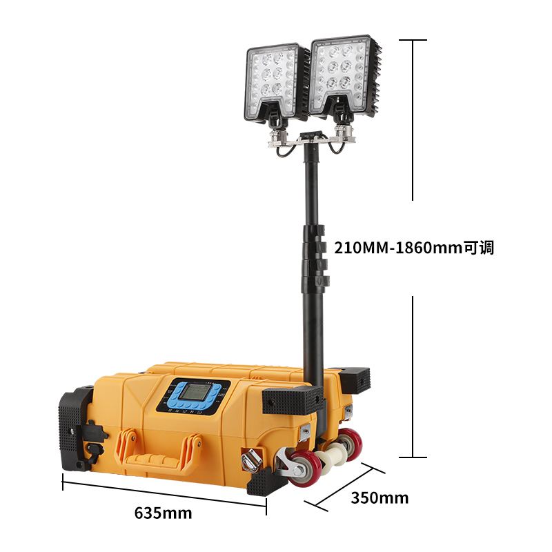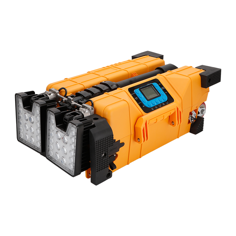 The integrated enclosure requires no disassembly and weighs approximately 20kg. It is equipped with a handle, pull rod, large wheels, and shoulder strap, allowing for hand-carrying, road-dragging, or back-carrying. The enclosure has an IP65 protection rating, and the lamp holder has an IP66 protection rating, making it impact-resistant and corrosion-resistant, suitable for harsh outdoor working conditions.