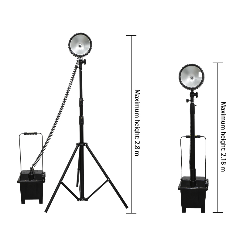 Chinabozz explosion-proof floodlight, 35W HID high brightness, up to 2.8 meters lifting height, 12Ah long battery life, waterproof and impact resistant, suitable for all emergency operation scenarios in railways, power, petrochemicals and other industries.