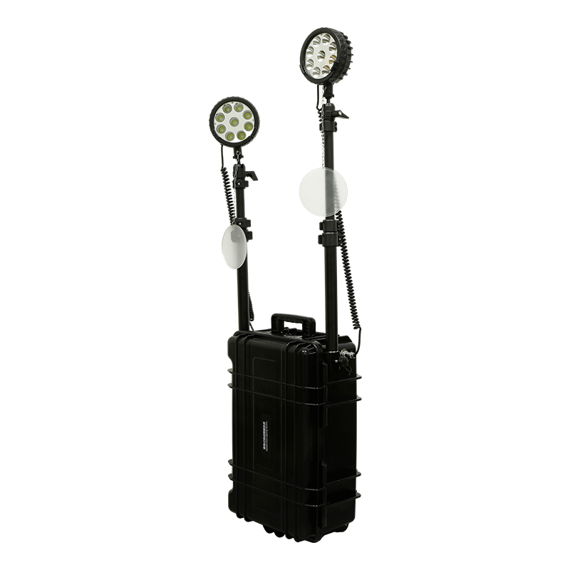 This portable mobile lighting system is a professional emergency lighting equipment that integrates dual-lamp high-brightness illumination with a box-type integrated design. Equipped with 2×27W high-power LED light sources, it can be raised to a maximum height of 2 meters, providing 360° illumination without blind spots. It integrates a 24Ah high-capacity lithium battery and a protective wheel case, making it suitable for all scenarios including field training, emergency repairs, and flood control. It is an ideal choice for wide-area, high-brightness mobile lighting.