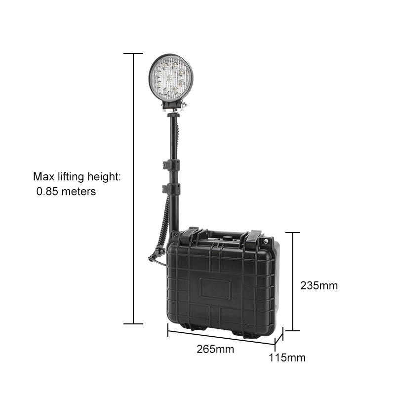 Portable box-type explosion-proof lifting work light, 27W high-brightness LED, 0.85-meter lifting height, 10Ah long battery life, 4.6kg ultra-portable, suitable for all scenarios of emergency rescue, construction and fire fighting.